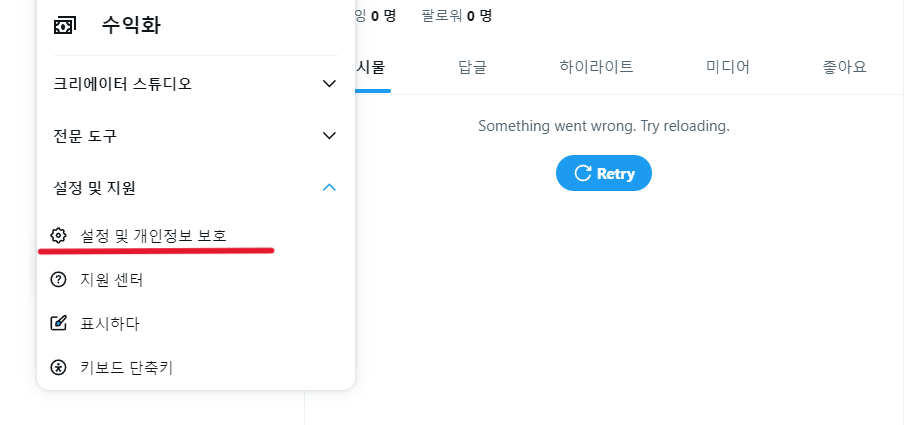 그리고 설정 및 지원을 클릭 후 설정 및 개인정보 보호를 클릭합니다.